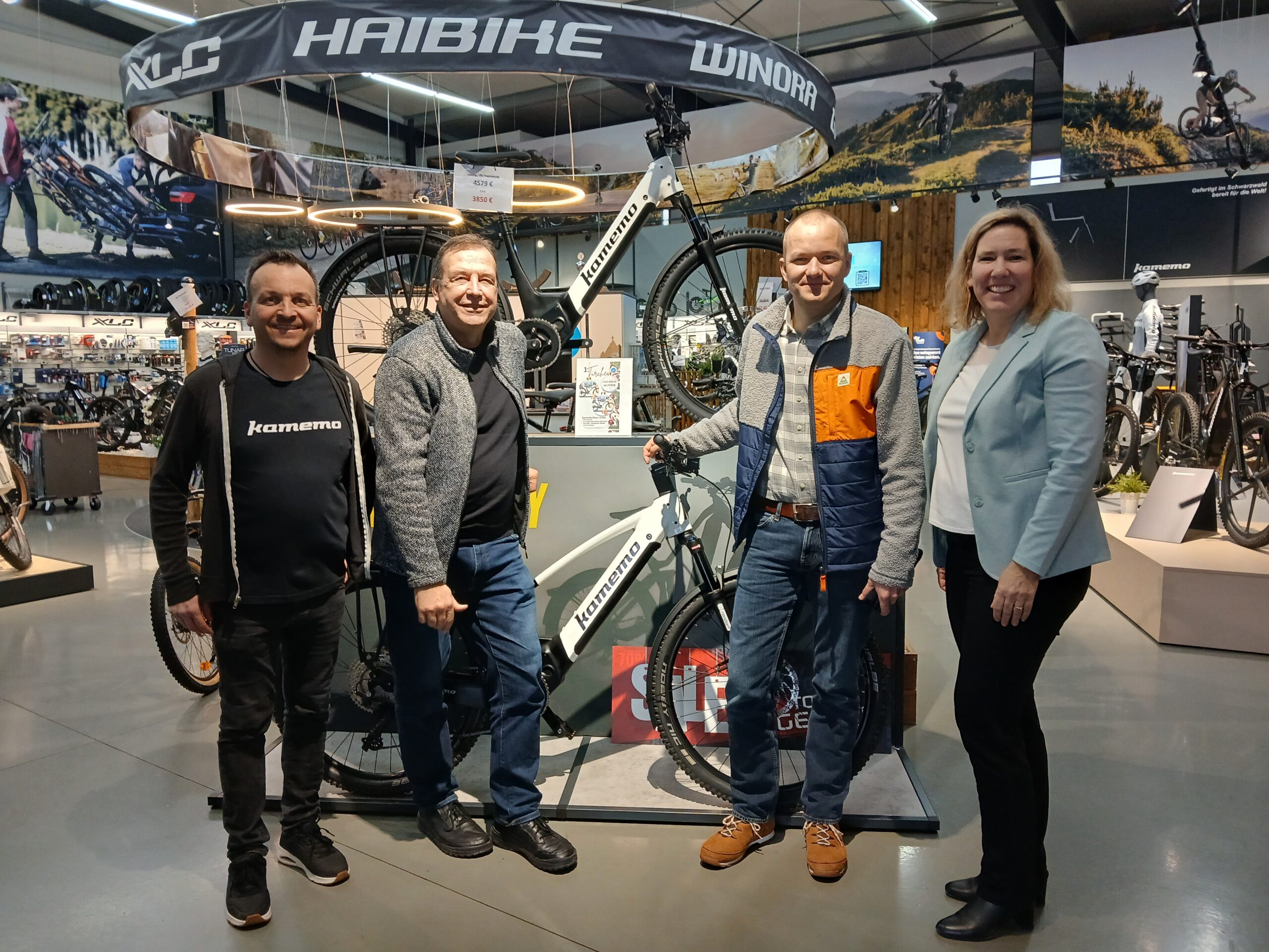 Im Anschluss haben wir gemeinsam noch die Firma Zweirad Kaletta besucht. Geschäftsführer Manuel Kaletta hat inzwischen die eigene sportliche Karriere beendet und mit einem Kollegen das Geschäft gegründet. Das Unternehmen arbeitet projektweise mit den Hochschulen Offenburg und Koblenz sowie der Aktion Mensch zusammen und fertigen z.B. ein Dreirad für Menschen mit Behinderungen mit Motorantrieb und auch Lastenräder selbst an. Die neueste Idee ist ein mitwachsendes Kinderfahrrad: Ab Frühjahr soll es ein Abosystem mit Monatsbeitrag geben, die Räder sind versichert und können gewechselt werden, wenn sie zu klein geworden oder kaputt sind.